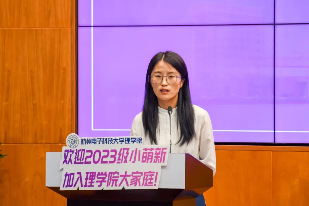 新生班主任代表刘美淇老师希望同学们在初入大学生活时,面对遇到的挫折不要泄气,学会接受生活,同时创造生活,并从适应大学生活,提高专业兴趣,培养兴趣爱好三方面为新生提出了建议,最后祝愿同学们在杭电理学院度过充实而美好的大学岁月。研究生导师代表陆晓铭老师给同学们提出三点建议:1.合理分配时间,平衡生活和学习,发现生活的快乐;2.在学术上不迷信权威,勤于思考,敢于探索;3.发现自己擅长的领域并成为最好的自己。