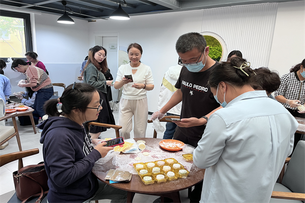 活动最后,经过大家的共同努力,一个个月饼迅速成型,不仅图案精美、口味多样,而且皮薄馅多,个个玲珑别致。月饼完成后,大家欣喜地品尝着自己亲手制作的月饼,享受着劳动带来的喜悦。