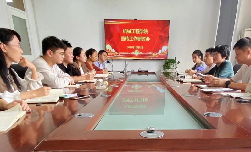 10月13日上午,机械工程学院在信义楼北316召开宣传工作研讨会,学院党委书记王胡英、党委副书记陈晨,学院办公室、学工办、教科办和老师代表等参加会议。