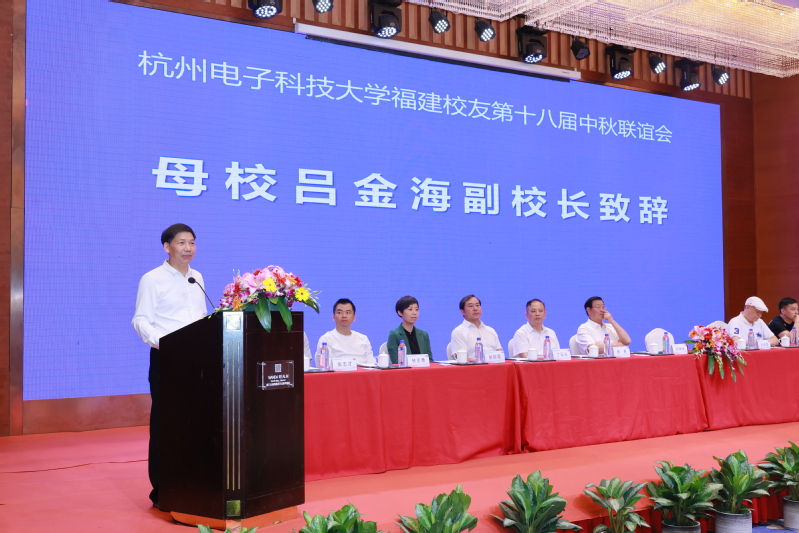 郭满金会长代表福建校友会对母校领导老师及各位嘉宾的到来表示热烈欢迎。在致辞中,他简要回顾了杭电福建校友会的发展历程,表达了对母校的感恩之情,表示将带领福建校友会不断发展壮大,在联络校友和校友、校友和母校情感的基础上,为母校、校友、地方经济发展做出应有贡献!