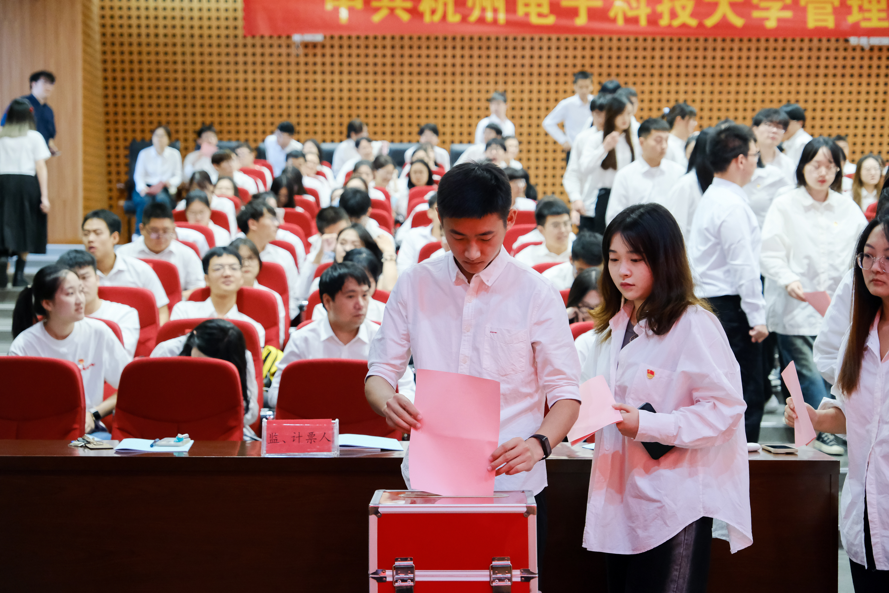 会议严格按照《中国共产党章程》和《中国共产党基层组织选举工作条例》等有关规定和要求进行。会上宣读了《中共杭州电子科技大学管理学院委员会党员大会选举办法(草案)》、监票人和计票人建议名单,采取无记名投票和差额选举的办法,补选学院党委委员4名。经过选举,张忠良、张晓琪、张蕊、陈文冲增补当选中共杭州电子科技大学管理学院委员会委员。