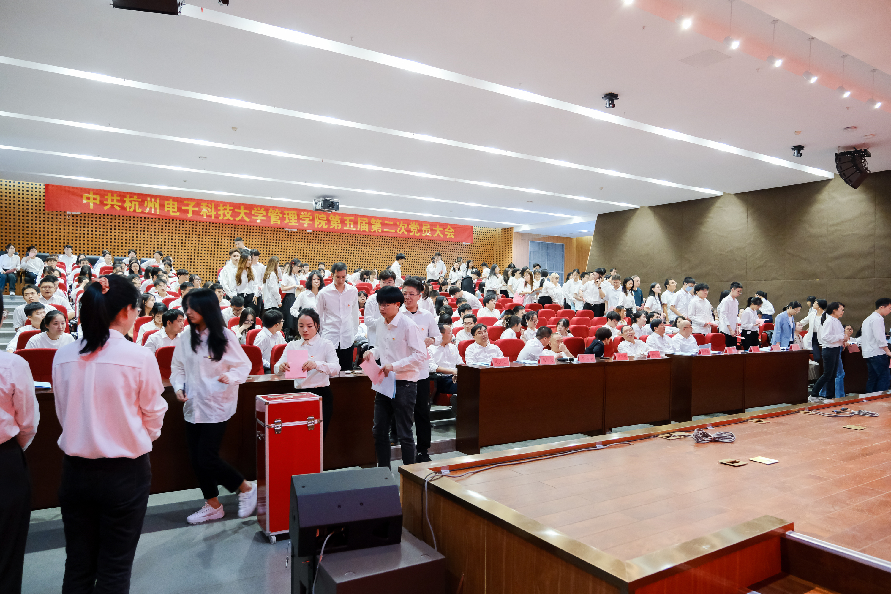 10月18日下午,经上级党委批准,杭州电子科技大学管理学院党委召开第五届第二次党员大会,增补选举学院党委委员。大会邀请到郝敬习、陈畴镛、杜伟锦、陈新等领导嘉宾,学院党政领导班子出席大会,全体党员师生参加会议。会议由学院党委副书记叶坚主持。