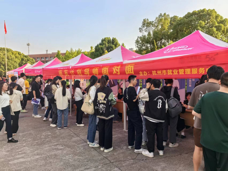 为了更好地给毕业生提供精准就业指导服务,在招聘会现场设有就业服务类展区,为毕业生提供考研、考公、出国、留学指导,IT培训、钱塘区社保政策咨询、大学生征兵政策咨询等专项就业指导服务。同时,还设立了杭州市就业见习基地招聘专区、“师友计划”导师面对面专区等,邀请省内知名就业指导专家为同学们提供简历修改、生涯规划、求职咨询等,进一步引导学生正确认识自我,合理规划职业发展,提升大学生求职技能。