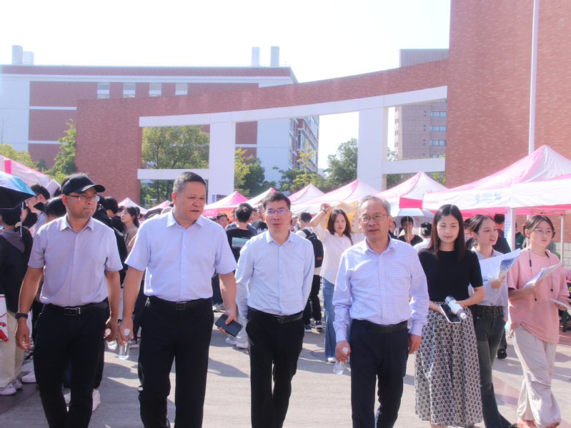 浙江省教育发展中心主任、党委书记汪国辉,杭州市就业管理服务中心主任、党委书记徐明在校党委副书记戚明钧陪同下前往招聘会现场关心指导毕业生求职就业情况。汪国辉一行一边走一边看,不断地向相关部门和老师询问了解招聘会具体情况。汪国辉指出,杭电作为电子信息特色明显的高校,要充分发挥省级数字经济类专场招聘会的示范引领作用,搭建好用人单位供需平台,进一步拓宽毕业生就业渠道。徐明提到,希望杭电充分利用杭州市大学生实习见习基地优质企业资源,发挥好杭州市师友计划导师作用,不断推进大学生成长成才。戚明钧表示,杭电将进一步融合信息化特色,创新就业大数据网络平台,构建“互联网+”就业工作新体系,全力助力毕业生高质量充分就业。
