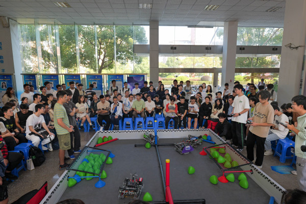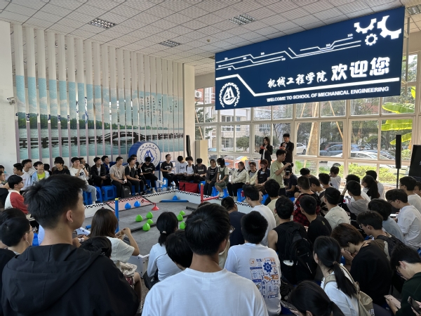 10月18日下午,机械工程学院第一届VEX机器人表演赛在第二教学楼大厅圆满落幕,比赛吸引了200余名新生自发前往观摩。