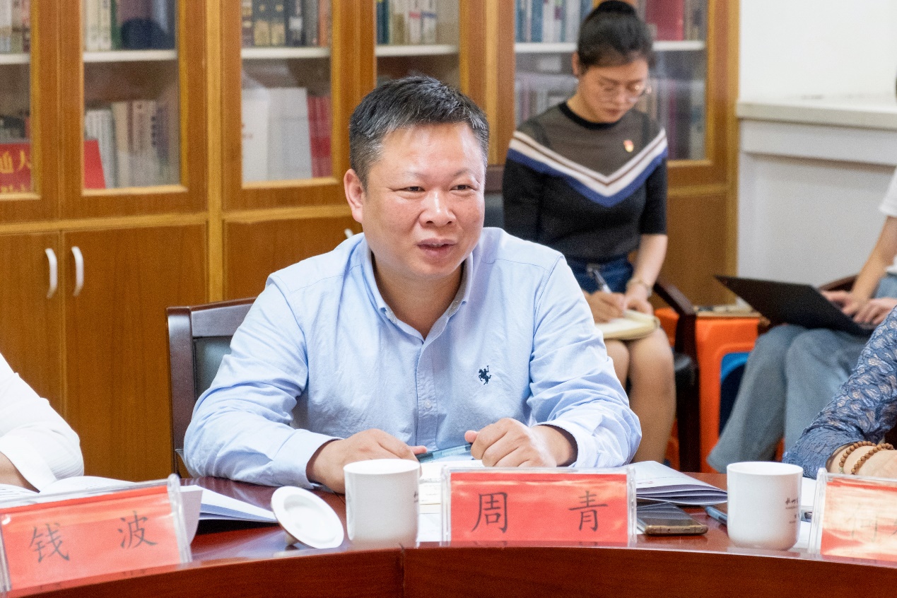 周青对管理学院的党建工作给予充分肯定,他提出三点建议,一是党建与业务是一个体系,要深度融合、密切融合、有机融合,更需要系统地规划与设计,从而实现党建与业务共同高质量发展;二是要充分凝聚学院科研团队的力量发展业务,也要重视对外交流学习,全面思考如何打响管理学院的党建品牌;三是要加强党建与统战的研究,在党建与业务发展中发挥管理学科优势总结和凝练项目经验,形成学术成果,助力党建发展。