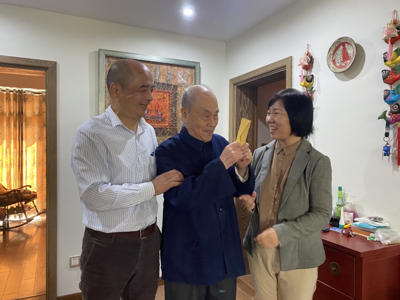 次日,离退休工作处还上门看望了离休干部苏恩学、叶又新夫妇等,欢度佳节,共话未来。