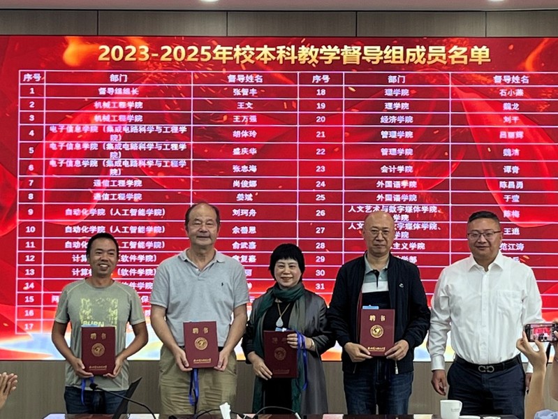 质评中心负责人冯忠娜宣读了上一届优秀本科教学督导奖获奖名单和新一届校本科教学督导组成员名单。通过评选,共有9位校督导、29位院督导、3个院督导组获得了优秀本科教学督导奖的荣誉。同时,本届共聘得33位校本科教学督导,其中7人兼任实验督导。李文钧向全体获奖成员与新一届督导组致以了诚挚的祝贺,并分别为获奖督导代表和校督导代表颁发了荣誉证书和聘书。
