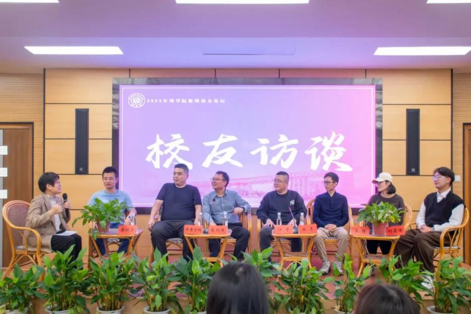 现场安排了七位不同工作领域的校友进行访谈,聆听他们的杭电故事和人生经历,访谈学工办主任张彦飞老师主持。校友分别为:02级应用物理专业、院校友会副会长兼秘书长、杭州蔚复来有限责任公司总裁张利强;03级信息与计算科学专业、院校友会副会长、台州银行宁波奉化分行行长江奇;08级信息与计算科学专业,院校友会副会长、政采云有限公司资深运营申屠宇阳;11级运筹学与控制论专业研究生、江苏百算智能科技有限公司执行董事兼CEO 张晨;08级应用物理专业、南方科技大学高级研究学者梁桂荣;11级信息与计算科学专业、阿里巴巴集团前端开发工程师李博;16级数学与应用数学专业、原校学生会副主席,丽水学院科研助理何霆啸。活动现场,学生们向校友们抛出一个个他们的困惑,“创业路上如何一直保持勇立潮头”“数理生如何在金融领域拔得头筹”等等,校友们一一做了解答。
