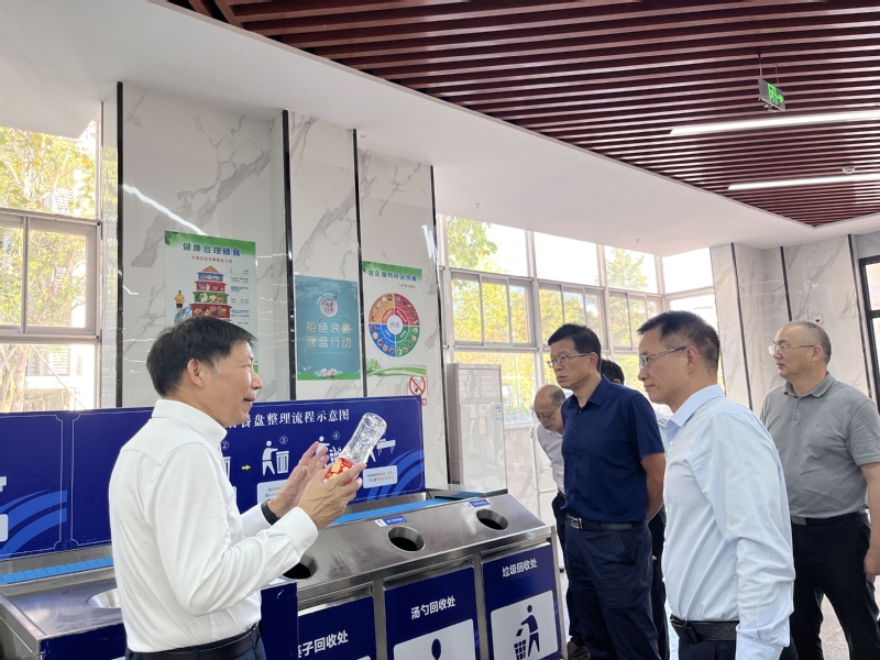 吕校长简要介绍了我校的办学历史、专业特色、绿色校园建设、垃圾分类、后勤服务管理等工作。考察组一行实地参观了休读园、亚运击剑场馆、学生餐厅、后勤工会小家、智能垃圾箱投放点位,详细了解我校后勤管理经验、校园食品安全管理工作经验、学校生态文明教育工作经验等。