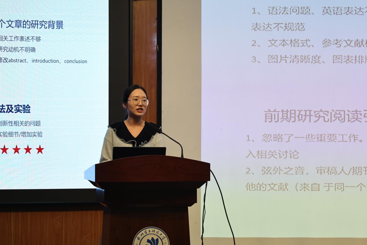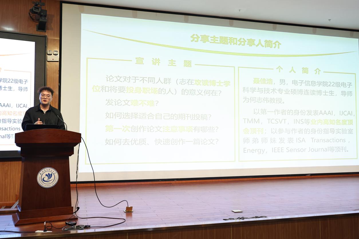 学院研究生辅导员李柘柘主持本次会议,邀请了三位优秀的23年博士研究生国家奖学金获得者就科研论文方面进行经验分享。