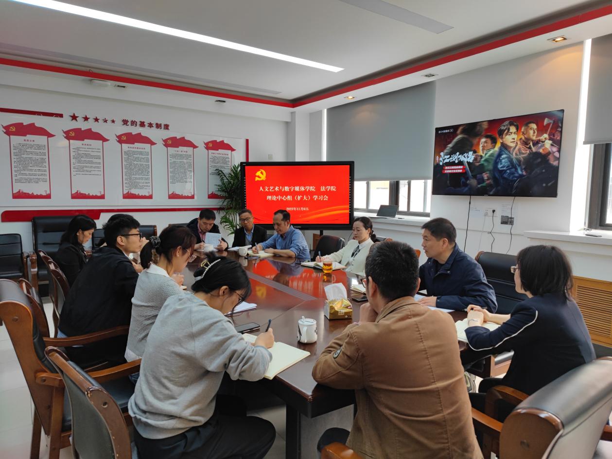 11月6日上午,人艺数法学院在10教318会议室举行党委理论学习中心组(扩大)学习会,专题学习习近平文化思想。学院党委书记冯瑛主持,党委副书记马化龙领学,理论学习中心组全体成员、学生党支部书记参加。