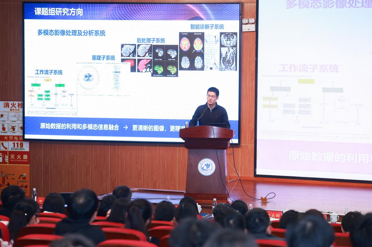 国家青年特聘专家、研究员、之江实验室混合增强智能研究中心副主任、浙江大学博士生导师朱闻韬,开展《计算驱动的新型成像技术及应用》学术报告,基于PET、CT等医学影像模态,介绍图像重建、目标检测、慢病筛查等具体问题中计算驱动的图像信息处理方法,探讨人工智能技术与经典影像物理原理深度结合的机遇和挑战。
