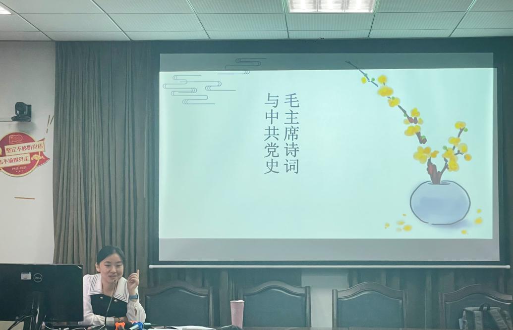 近日,经济学院本科生第一党支部开展“毛主席诗词与中共党史”专题党课活动。辅导员史维老师别具匠心,创新党课形式,以毛主席诗词入题,为支部新一批发展对象上了一堂生动的党课。