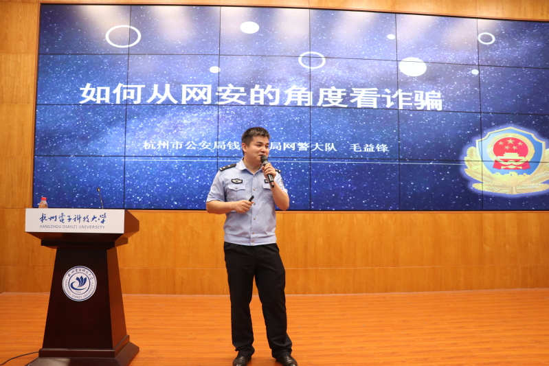 学院邀请了杭州市公安局钱塘分局网警大队副队长毛益锋作以“如何从网安角度看诈骗”为主题的网络安全教育专题讲座。学院全体2023级本科生和研究生参加了此次讲座,讲座由院学工办主任刘莉主持。