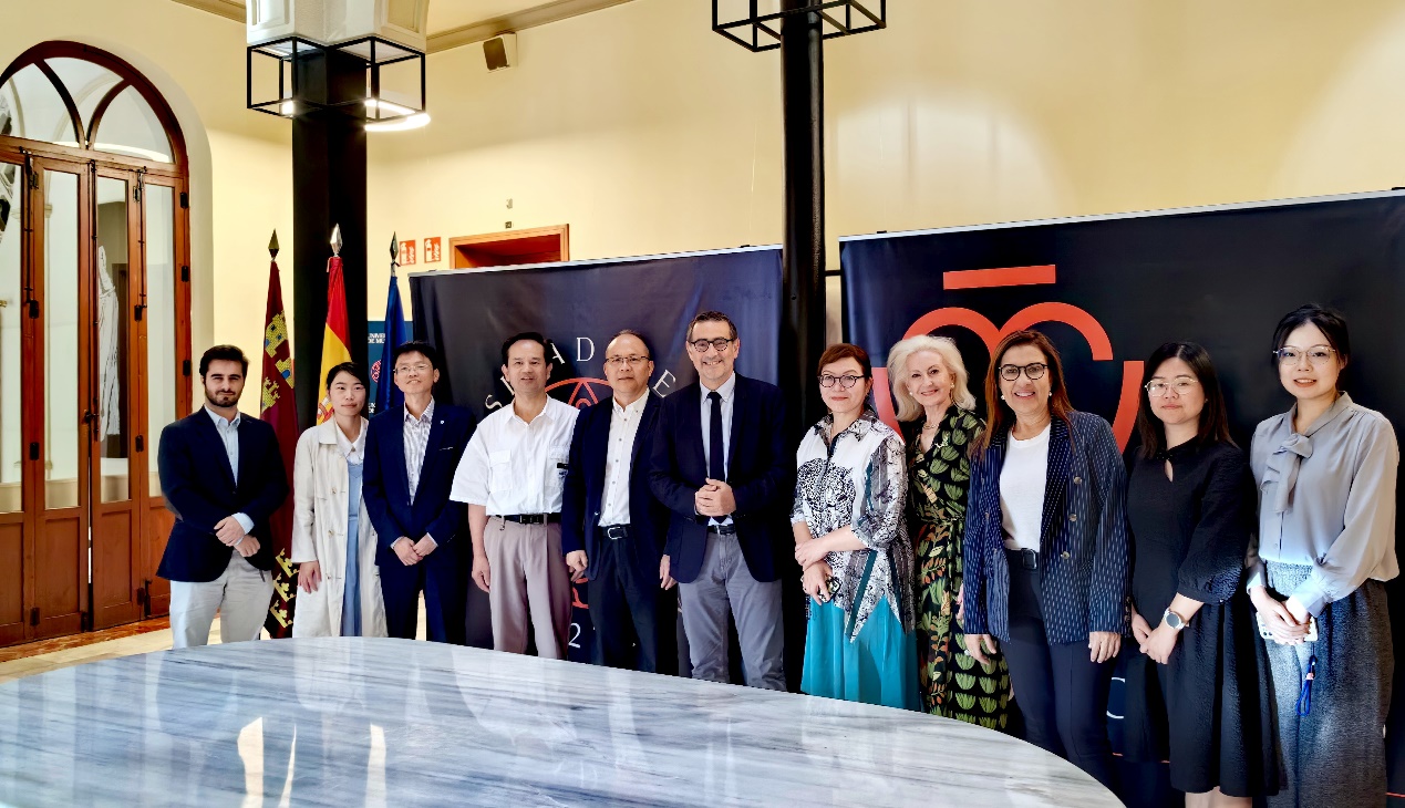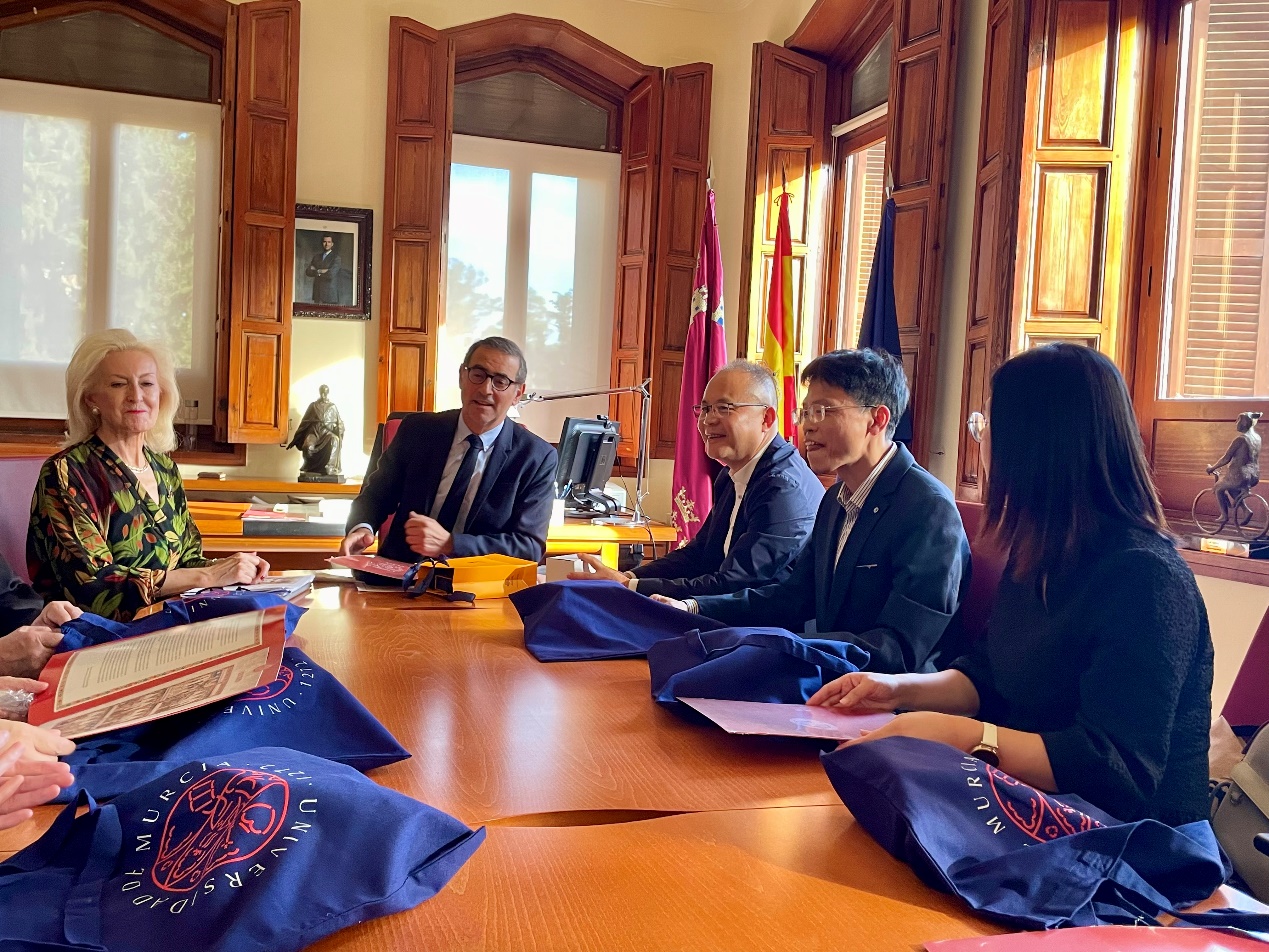 代表团前往西班牙穆尔西亚大学,西班牙皇家医学院院士Maria Trinidad Herrero带领代表团成员会见穆尔西亚大学校长José Luján,双方就深化合作关系、扩大国际学术交流和推进研究生互换等多个议题展开了深入探讨,旨在不断推动两校间的合作迈向新的高度。