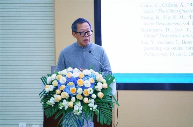 复旦大学社会学系黄荣贵教授做了题为“文化、网络与世代视野中的社会心态”的特邀报告。黄荣贵教授介绍了研究的四个方面,一是网络民族主义的三重面向;二是有关青年网络暴力活动的话语特征、身份背景与概念特征;三是豆瓣阅读中当代青年思想消费;四是“两微”平台青年用户的价值观念结构差异,展示了中国网民的网络社会心态现状和变化。