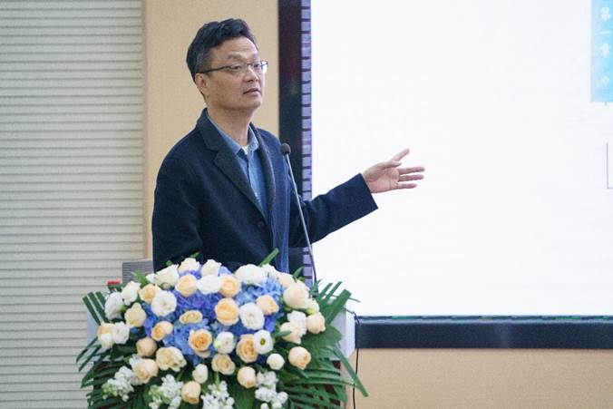 杭州国家版本馆党委书记、馆长吴雪勇教授首先做题为“中国(江南)版本源流”的主旨报告。吴雪勇馆长主要以杭州国家版本馆为例,讲解围绕版本的源流、版本的印刷、版本的地位和作用以及研究的最新成果,带与会者纵横于五千年文明传承发展的纹饰刻划、写本与印刷的历史进程。