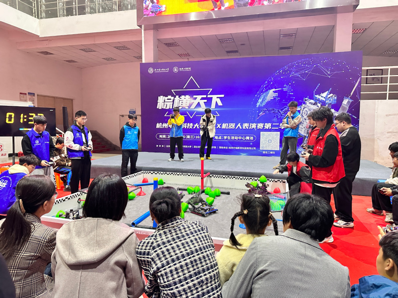 11月15日下午,由机械工程学院承办的杭州电子科技大学VEX机器人表演赛第二季在学活舞池举行。机关党委书记袁秀川,校团委书记邹昕瑶,计财处副处长赵琦、胡碧霞,设备处副处长金伟刚、马红岩受邀观赛。机械工程学院党委书记王胡英、院长倪敬、副书记陈晨以及教师和学生代表200余人观看比赛。