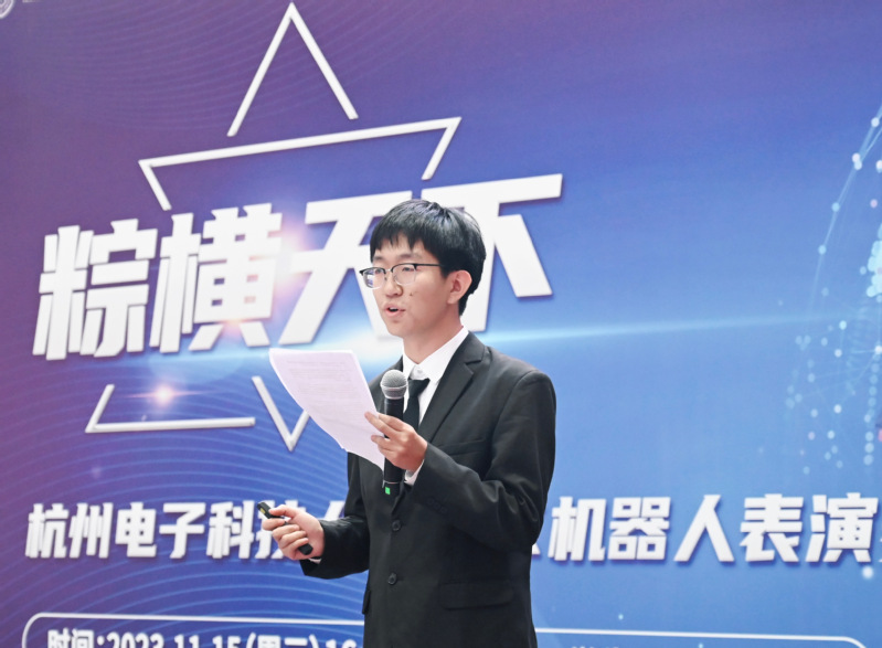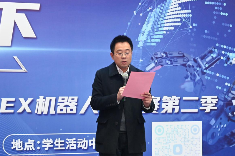 院长倪敬致辞。他表示,VEX机器人竞赛集聚了设计制造的光、机、电、液一体化技术,是结构设计、工程设计、电气设计、电子设计、学术论文和综合应用六大创新实践课程学习成效的直接展示平台。通过参加VEX机器人比赛,同学们可以实实在在地提高自己各方面的能力与实力。VEX机器人校赛的开启,意味着杭电机械工程学院新的梦想的开始,希望同学们尽情享受这场机器人创新盛会。