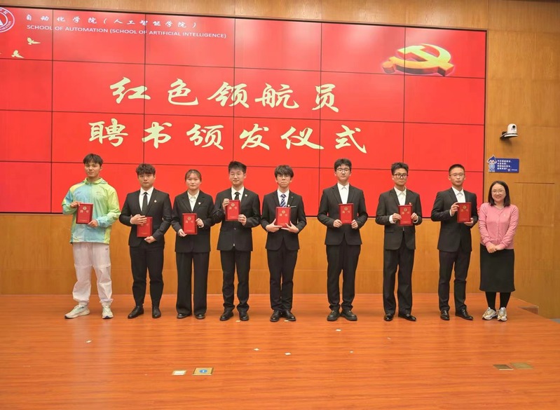 随后,党委副书记吴汉玲和学工办主任张剑为班级红色领航员颁发聘书。