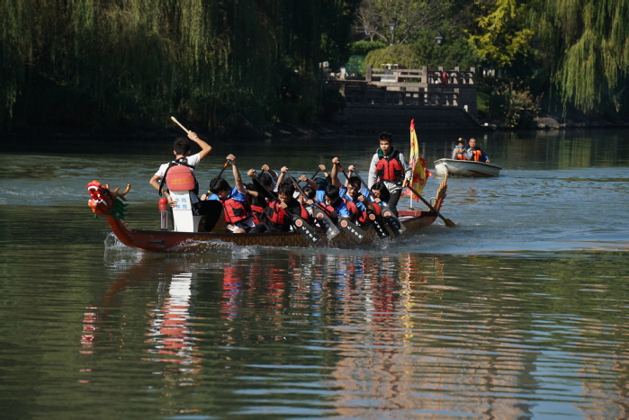 全部由杭电教职工组队、平均年龄超过40周岁的杭电蛟龙队尽管没能闯入决赛,但成绩较平均年龄20岁的小伙子们仅慢了两秒(1′08″),赢得了对手们及主办方的尊重。杭电教工是在杭高校参与水上运动最为积极踊跃的团体,引来兄弟院校老师们艳羡的目光。杭电水上运动的蓬勃开展,体现了杭电人同舟共济,勇立潮头的时代精神,也为杭电教职工的丰富业余生活增添了独具魅力的华彩篇章。