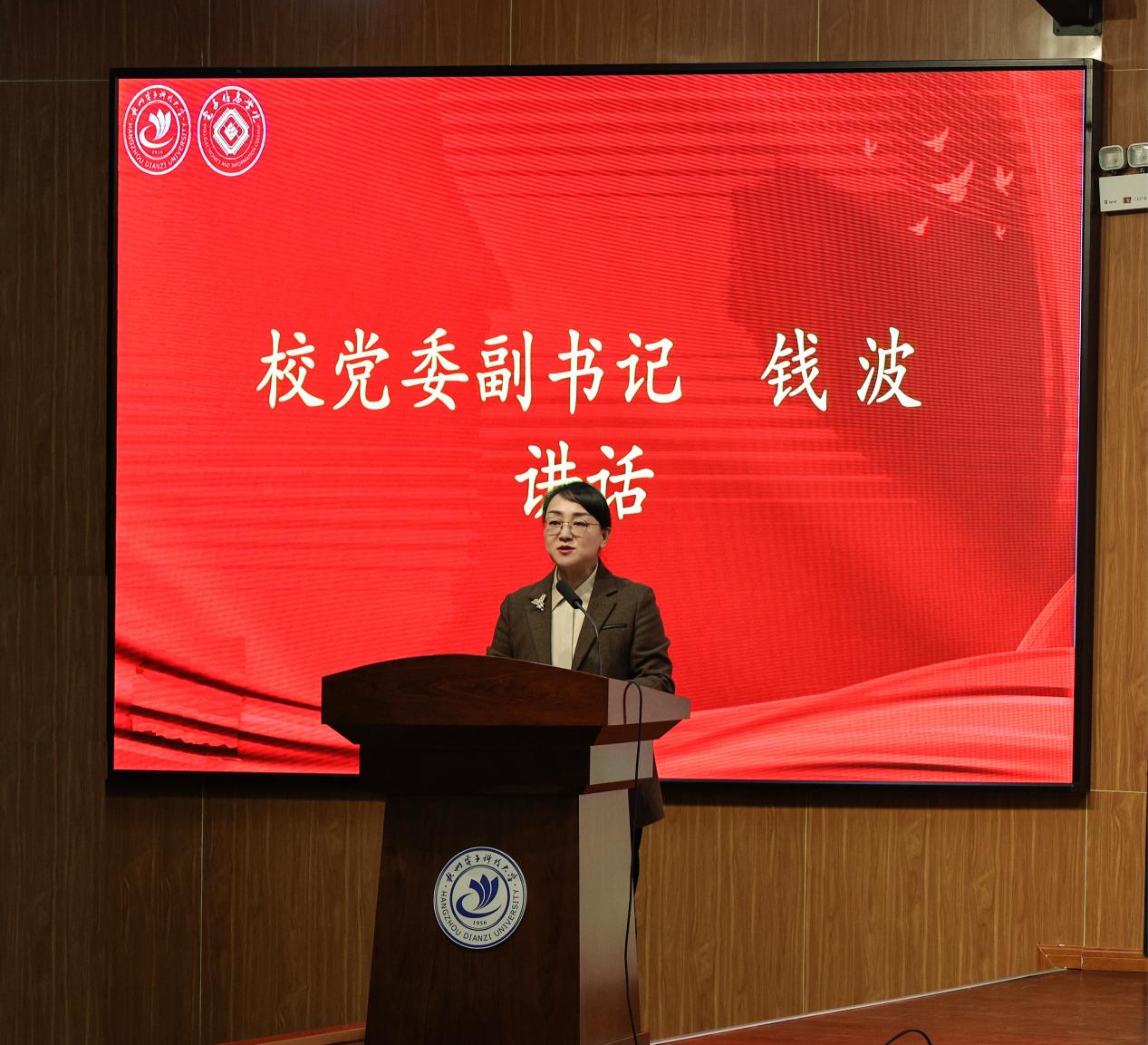 钱波对宣讲团的成立表示热烈祝贺。她指出,学院立足电子信息学科特色与党建工作创新,成立“红芯”宣讲团,致力于讲好杭电人脚踏实地攻坚“卡脖子”技术、传承接力培养“中国芯”人才的故事,这是探索党建与业务深度融合双提升的新尝试,也是践行杭电精神传承的具体行动,体现了学院以系统思维“一体化”推进学院各项事业的决心。她希望学院党政班子提高政治站位,把旗帜鲜明讲政治作为宣讲团建设的根本要求;着力融合提升,深度聚焦党建与业务在功能、机制、力量和载体上“四个融合”;注重引领示范,以党建引领、“红芯”领航为抓手,精心打造党建示范品牌和先进典型。
