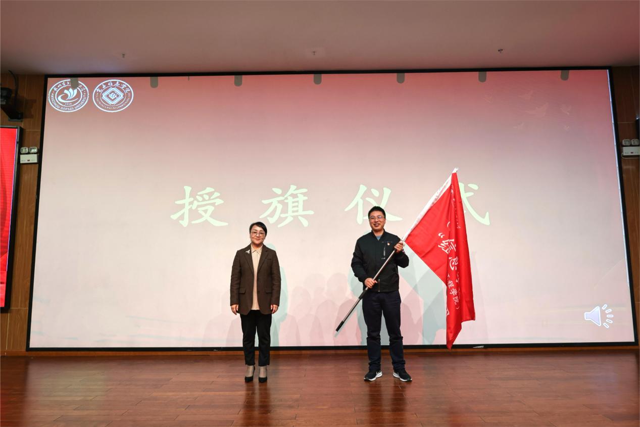 钱波在仪式上为“红芯”宣讲团授旗,周青、何志伟为宣讲团成员代表授牌。庄严的授旗和授牌仪式,宣告了“红芯”宣讲团的正式成立。成立“红芯”宣讲团,旨在发出习近平新时代中国特色社会主义思想的时代之音,以“讲政治、建载体、搭平台、勇创新、深融合、求实效”为思路,坚持把党建工作与业务工作相融合,引领全院师生坚定理想信念,学深悟透新时代党的创新理论,培养具有创新精神和实践能力的新时代电子人才。