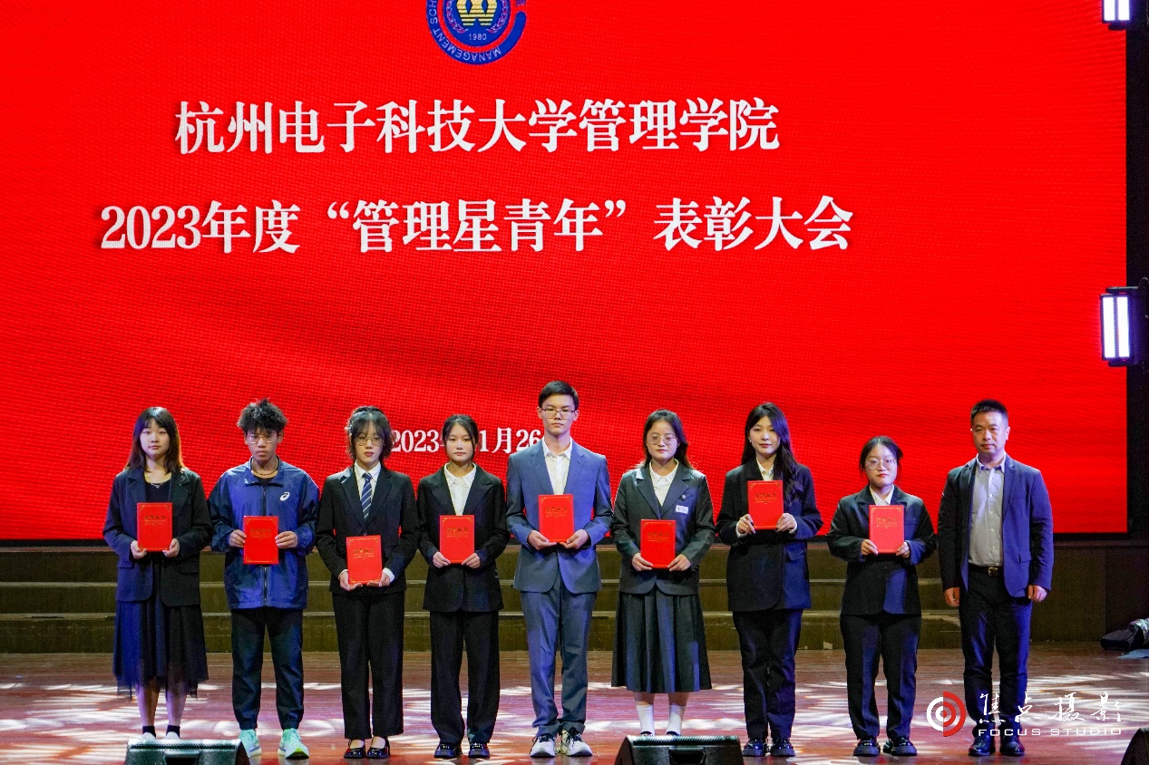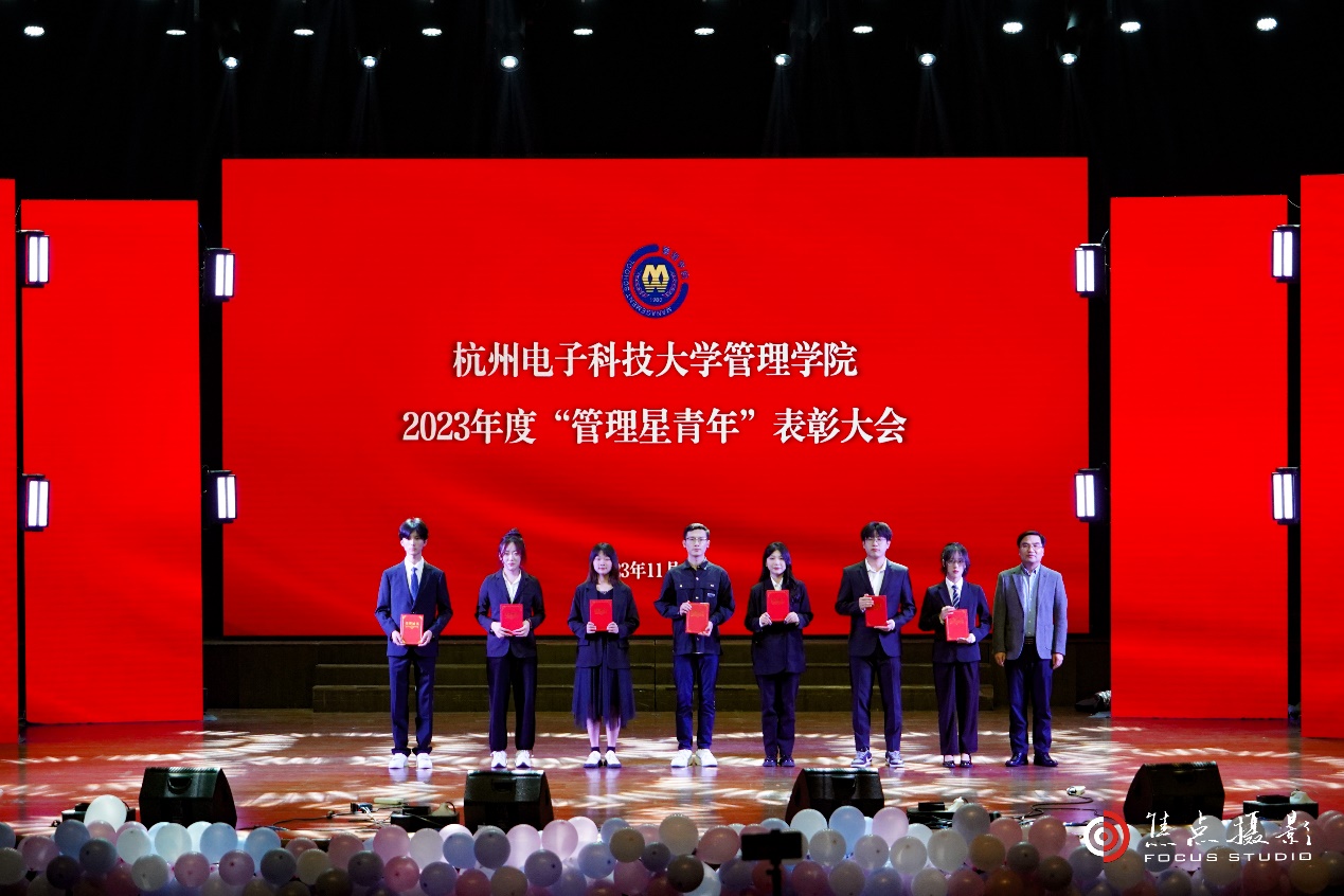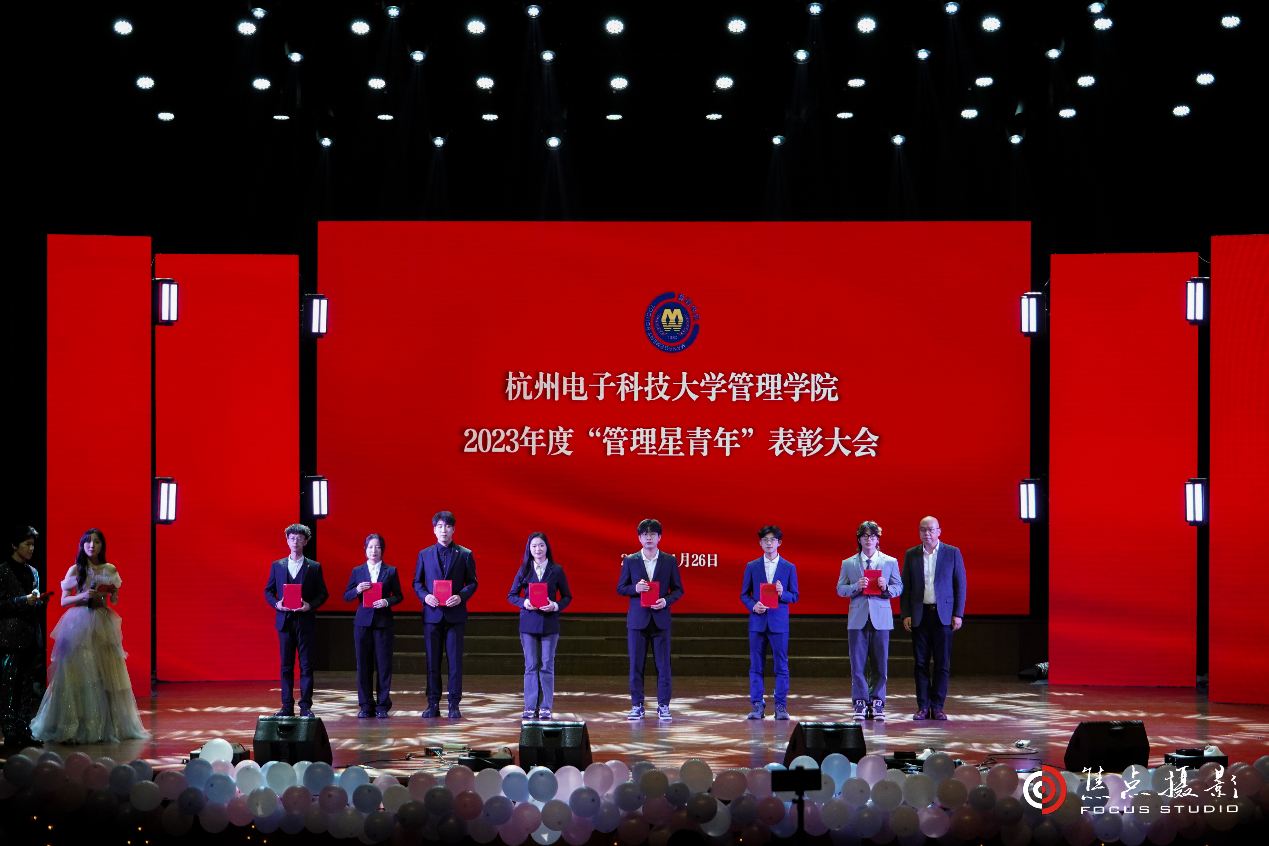 (管理学院院长杨伟为2023年度“管理星青年”文艺之星、求新之星、公益之星、自强之星颁奖)