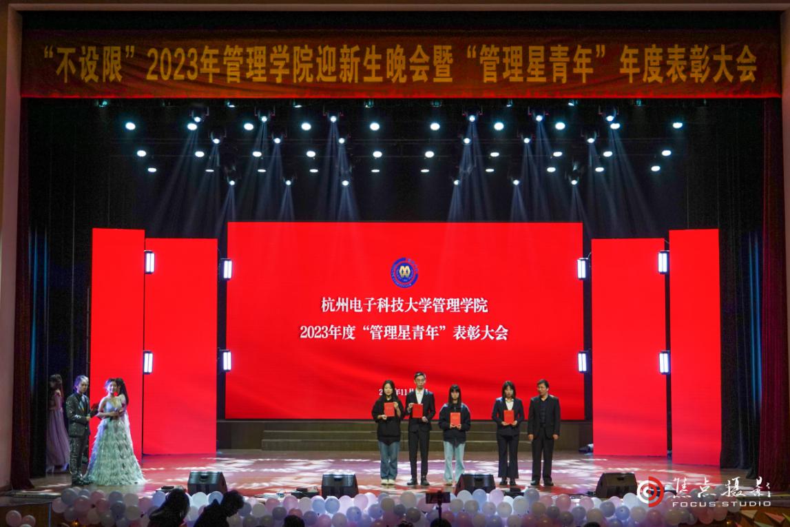 晚风长,秋声漫,山腰落日,镜水浮光天一色。梧桐叶,银钩月,金丹玉桂,美景良辰共此时。11月26日晚,管理学院2023年“不设限”迎新晚会暨“管理星青年”年度表彰大会在下沙校区学生活动中心剧院精彩上演。校党委副书记戚明钧,管理学院党委书记李国冰,管理学院院长杨伟,管理学院副院长胡保亮,管理学院辅导员、新生班主任与管理学院400余名学生一同观看演出。