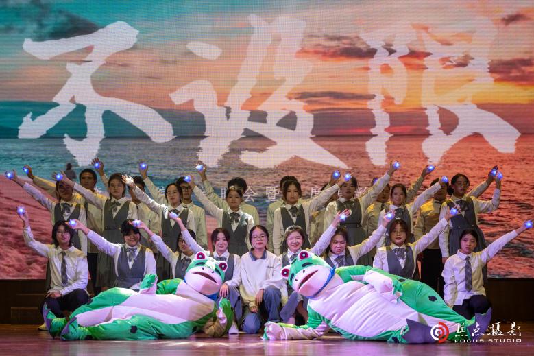 本次晚会由“循环重启”“厚积生长”“辉煌绽放”三个篇章组成,节目形式多样、主题鲜明、内涵丰富,台下挥舞的荧光棒交错闪烁,歌舞演出引得欢呼不断,话剧节目给现场观众带来阵阵欢笑,学生们的意气风发和蓬勃朝气在整场节目中得到了淋漓尽致的展现。《我的未来式》《蚂蚁+有暖气》《青春修炼手册》等歌曲旋律活力跳动、歌词朗朗上口,唱出新时代青年蓬勃的青春活力和对生活的热爱;《Love me land》《Gueencard+X》等舞蹈热情奔放,现场氛围火热;由学生们编导的话剧《范进中举》生动地演绎了科举制度下的悲剧缩影,经典而又引人深思,话剧《灰姑娘与小美人鱼》让观众在欢声笑语的同时也对社会的现状进行反思。