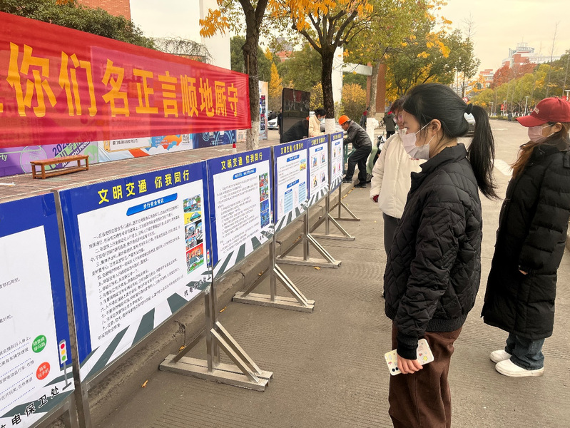 为迎接第十二个全国交通安全宣传日,进一步增强广大师生的交通安全文明意识,提升交通安全知识水平和自我保护能力,减少交通安全事故发生,11月30日,保卫处在学活西侧开展了主题为“文明交通,你我同行”的交通安全宣传日活动。