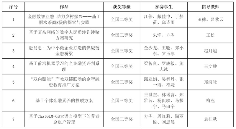 据悉,该项赛事得到了全国120家高校的积极响应,共有1780位师生踊跃参赛,共提交291份作品,选题几乎涵盖了金融科技的各个新兴领域。经过专家评选,共81份优秀作品进入全国预决赛,我校有7支队伍成功入围预决赛并获全国奖。