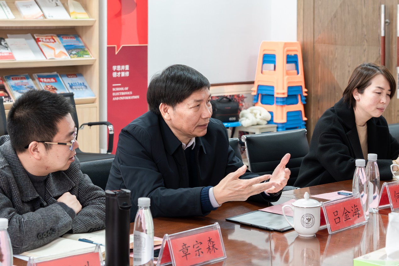 电子信息学院副院长赵文生就学院历史、师资队伍建设、人才培养体系等方面做了详细介绍。他指出,学院一直坚定走内涵式发展道路,对标国家需求,遵从学科发展规律,契合学院历史基础,教学科研互相促进,以不断提高师生获得感和社会美誉度。