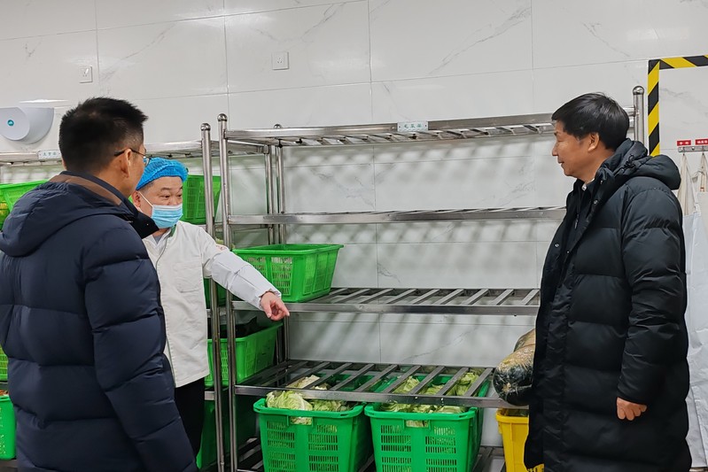 吕金海一行实地察看了生活区粮食储备仓库、食堂储备间、学生公寓、车辆调度室等区域,详细询问了应对灾害天气的应急处置预案,包括应急物资储备、基础设施防护等落实情况。重点对物资供应储备情况进行了检查,对食材的供应保障和价格进行了现场询问。后勤服务中心主任王劲峰汇报了各类物资的储备情况。