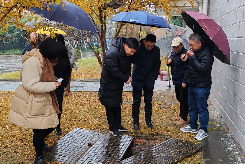 为做好冰雪灾害防御准备工作、排查风险隐患,12月18日下午,副校长吕金海带队实地检查下沙校区防寒抗灾工作,公共事务管理处、保卫处、后勤服务中心负责人等陪同检查。