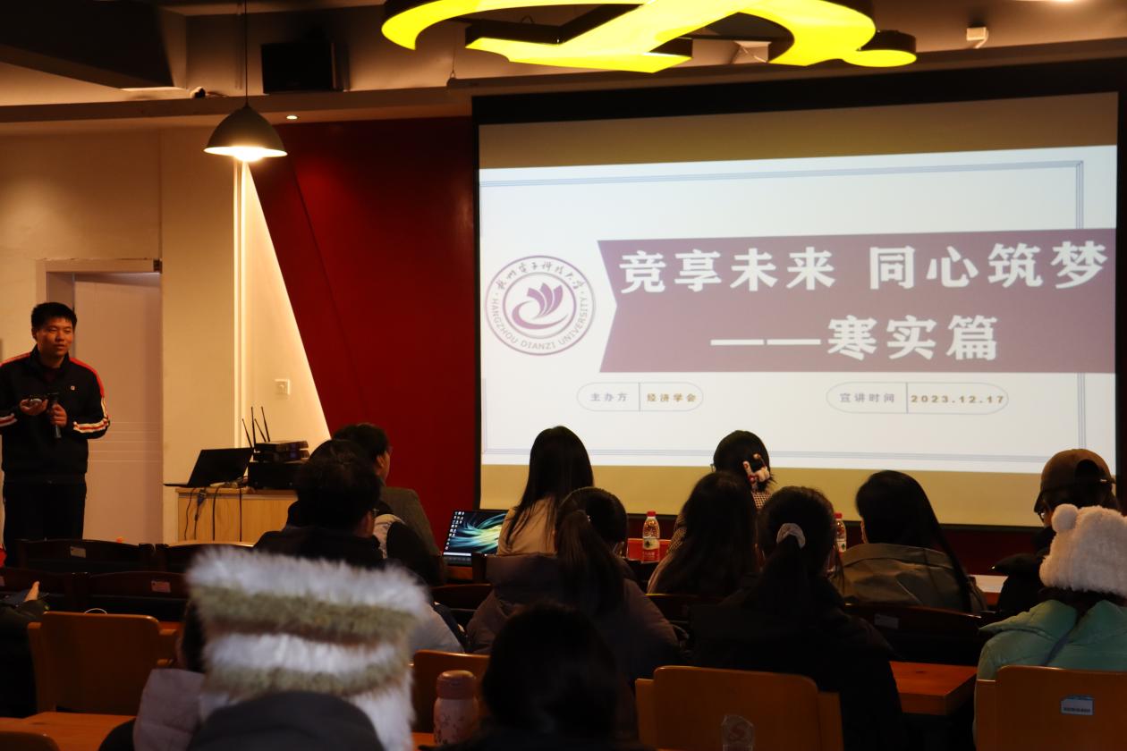 经济学院于12月17日下午在学生活动中心校党员之家开展了由经济学会主办的“竞享未来·同心共筑”竞赛分享会——2024寒假社会实践专题。经济学院共有48支队伍、278名学生参与2024年寒假社会实践,实践地点覆盖浙江、河北、福建、山东、辽宁、湖南、广东、云南、山西、陕西、安徽、西藏、重庆等13个省级行政区。本次分享会主要解读2024年“感恩母校行·共筑成长梦”寒假社会实践文件以及分享实践经验与方法,旨在增进同学们对实践的理解,动员大家积极参与。