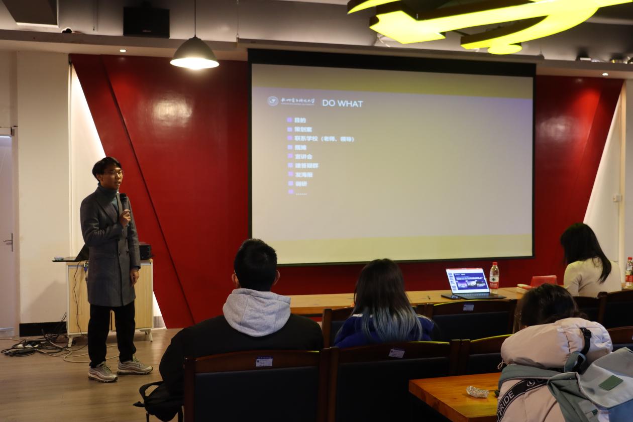 往年寒假社会实践评比获奖者2022级统计学专业李汶京和2022级国际经济与贸易专业崔娅菲分别就自己的实践经历进行经验分享。李汶京从优势专业、培养成效、校园生活等方面介绍本次实践可以宣传的亮点特色,并对调研报告、总结报告的撰写要求进行详细说明,指出各班级同学可以通过社会实践为个人与团队赢得荣誉,实现自身价值。崔娅菲就团队人员的分工技巧以及沟通母校宣讲的形式方法分享自己的心得体会。