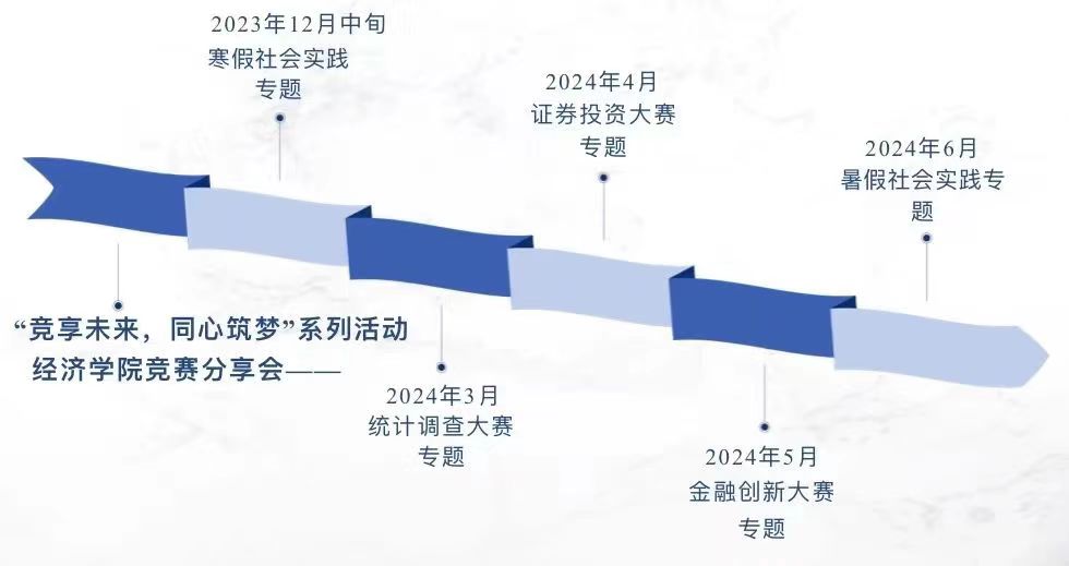 经济学院持续推动开展“党建新领航·五育新青年”精品系列活动。“智育营”依托经济学会,将于2024年举办“竞享未来·同心筑梦”竞赛分享会系列活动,包含“统计调查大赛”“证券投资大赛”“金融创新创业大赛”“2024年暑假社会实践”等专题,助力学院学子深入了解各个学科竞赛项目的参赛经验和职业规划思路,激发同学们对学科竞赛的兴趣,不断提升自身创造能力,带动学习热情,以更加积极饱满的姿态投身学科竞赛和创新创业活动中去。