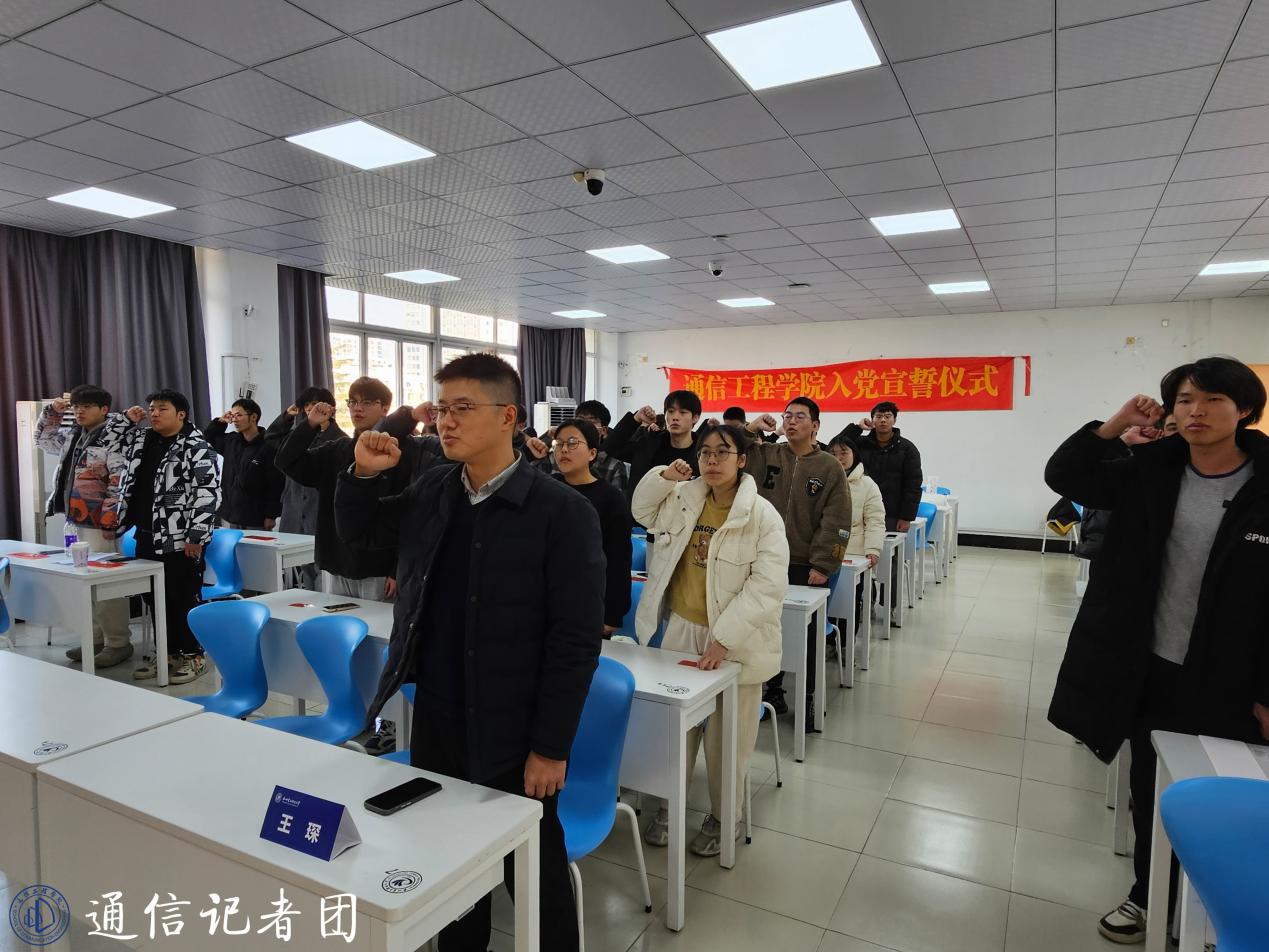 为引导新发展党员牢记党员身份,坚定入党初心,充分发挥先锋模范作用,12月27日下午2:30,通信工程学院2023年下半年预备党员入党宣誓仪式暨党员寝室挂牌仪式在7教北306教室隆重举行,通信工程学院学工办主任王琛老师出席活动。