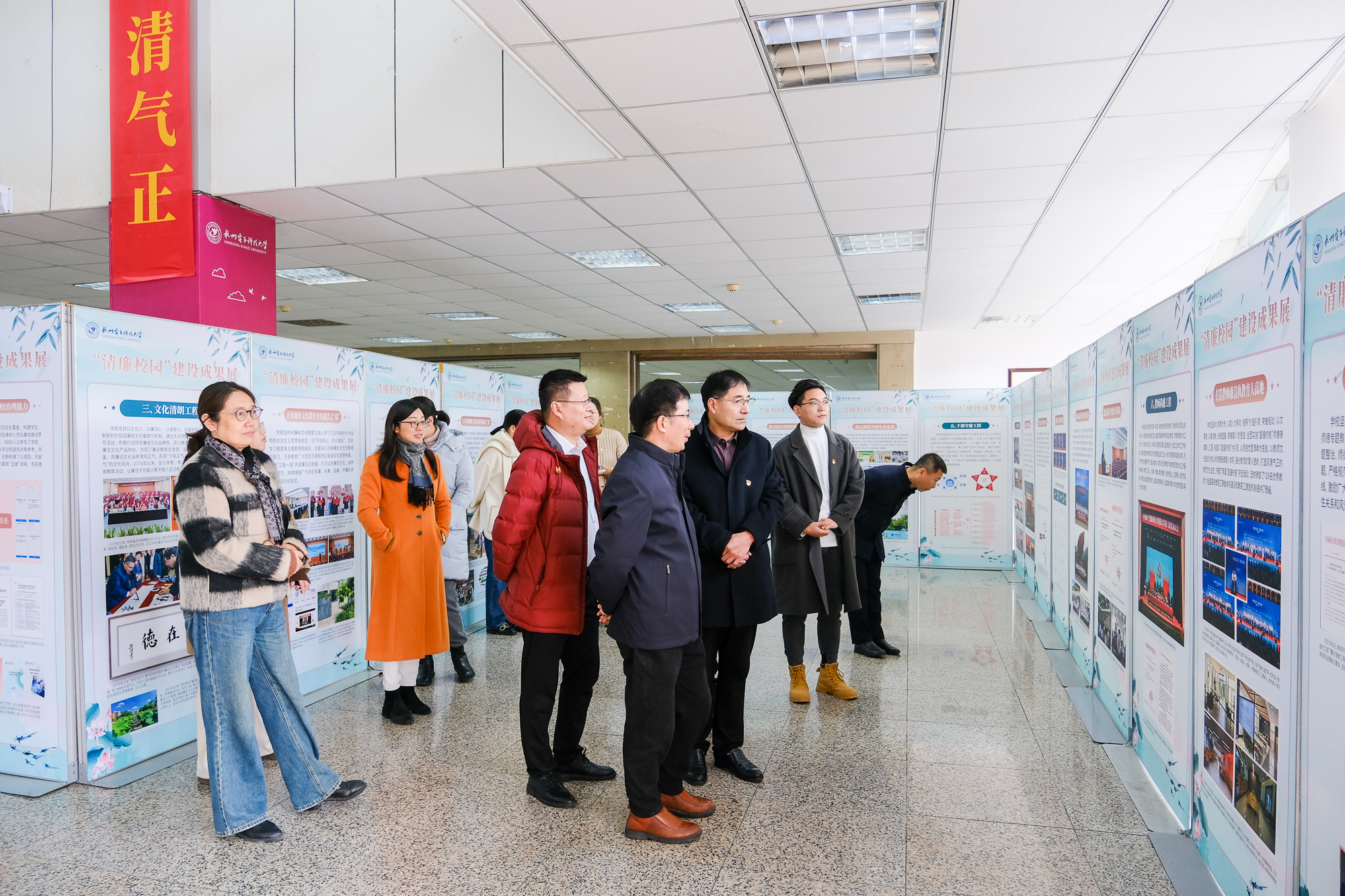 参观“红旗渠精神巡展”前,两个支部成员还共同参观了“清廉校园”建设成果展,展览共分为政治清明工程、制度清源工程、文化清朗工程、服务清风工程、干部守廉工程、教师尚廉工程、学生敬廉工程、监督促廉工程八个篇章,即“四清四廉”八大工程。牛东红充分肯定我校“清廉校园”建设成果,赞扬我校师生自觉用实际行动践行清廉价值观,展现了杭电人“笃学力行、守正求新”的校训精神和“国家大事千万尽力”的价值追求。支部成员纷纷表示,要继续加强党性修养,提高思想认识,努力践行“向上、向善、向廉”的价值理念,共同营造风清气正的校园环境。