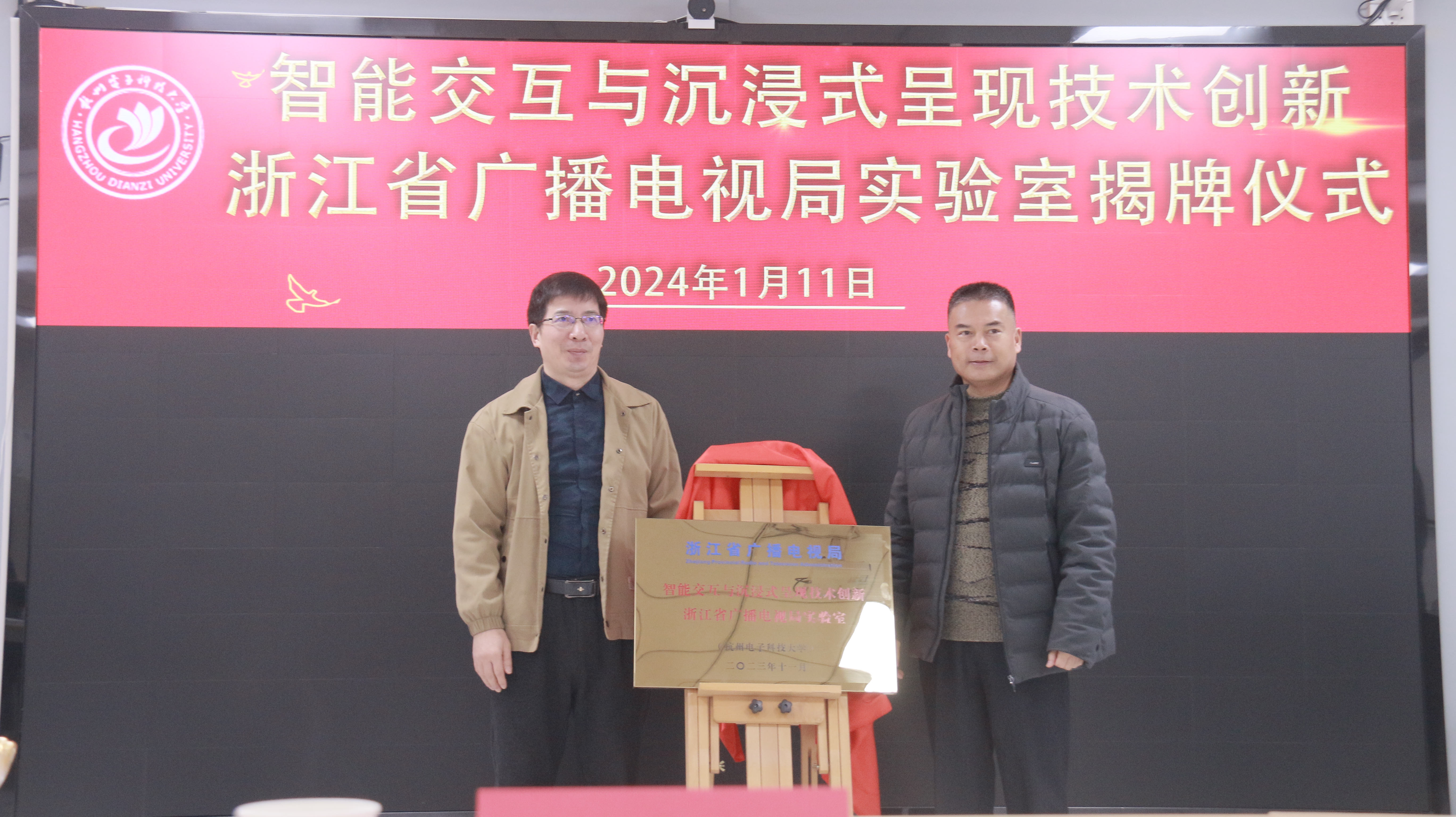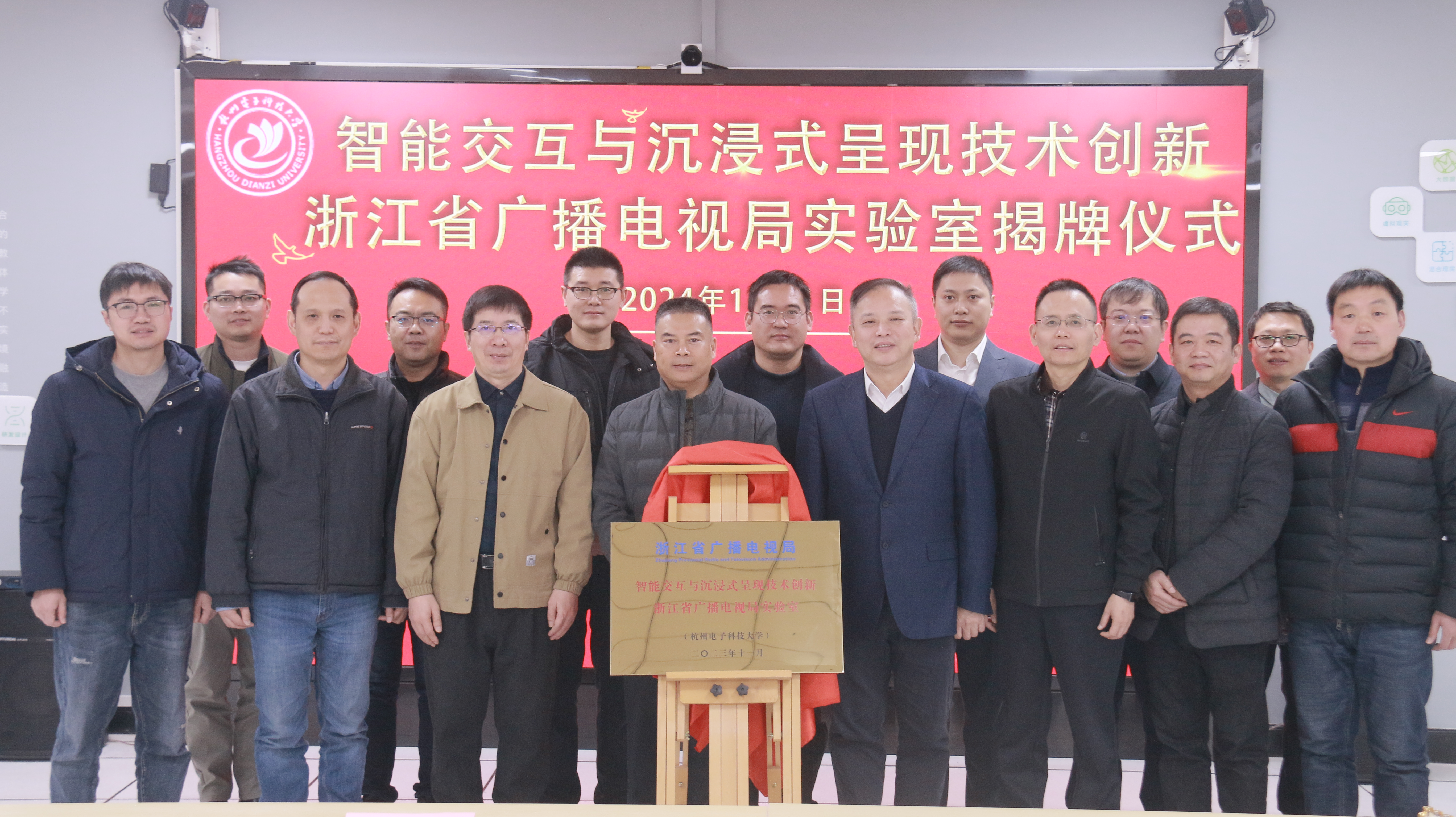 随后,戚明钧和胡海彪共同为智能交互与沉浸式呈现技术创新浙江省广播电视局实验室揭牌。