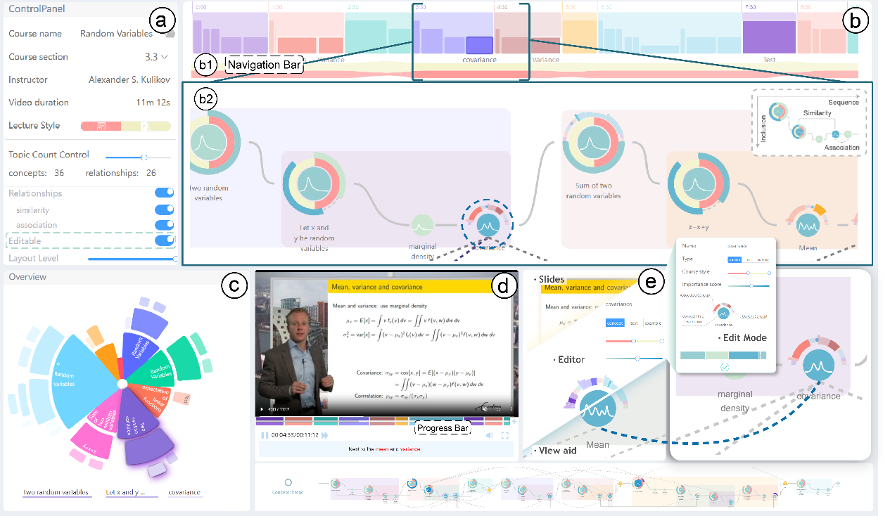 近日,我校人艺数法学院HDVIS团队研究成果“ConceptThread: Visualizing Threaded Concepts in MOOC Videos”被计算机图形学和可视化领域国际顶级期刊IEEE Transactions on Visualization and Computer Graphics (IEEE TVCG)录用,HDVIS团队负责人周志光教授为论文第一作者,2021级数字媒体技术方向硕士研究生叶力同学为学生第一作者,人艺数法学院院长王毅刚教授为合作导师。相关研究工作得到国家自然科学基金资助,同时也是该团队与浙江大学、新加坡管理大学、之江实验室共同合作的产出成果。