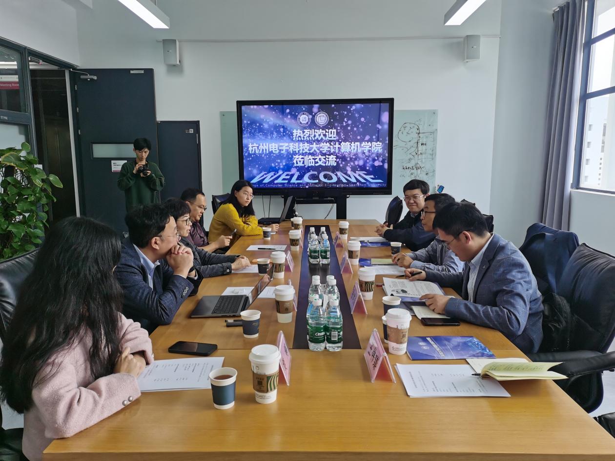 在深圳大学,计算机与软件学院院长黄惠热情接待了杭电计算机学院领导一行,陪同调研组参观了深圳大学计算机与软件学院创新成果展示。黄惠院长及深大计算机与软件学院副院长崔来中、贾森参加了调研座谈。孔万增首先介绍了杭电计算机学院建设发展的基本情况,崔来中介绍了深圳大学计算机与软件学院在人才培养、平台建设、人才引育、科学研究及文化建设等方面取得快速发展和重要成绩。双方围绕绩效分配、团队建设、研究生招生、人才引进、重点实验室建设、现代产业学院建设等两个学院面对的发展共性问题开展了深入的研讨。