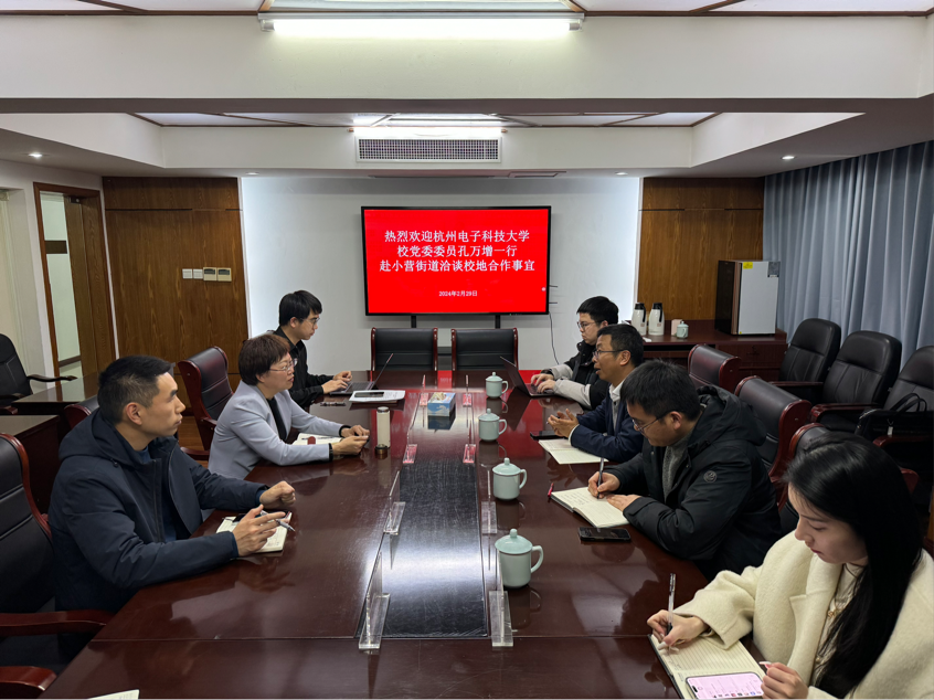 2月29日下午,校党委委员、组织部部长、计算机学院党委书记孔万增、计算机学院副院长张建海等一行赴小营街道洽谈校地合作事宜,双方就校地合作、科技创新、经济建设、人才招引等共同关心的话题展开深入交流。