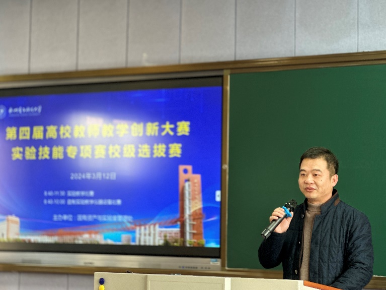 国资实验处处长孙淑强介绍省赛和校赛安排与要求,对参赛学院的热情参与和支持表示感谢,鼓励参赛教师把握机会、深入学习、加强交流、提升自我。