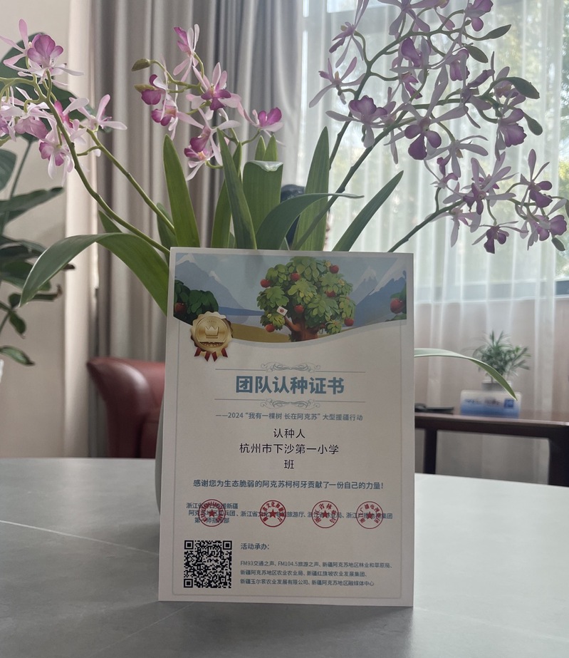 杭州电子科技大学附属第一小学校长董夫奏说:“我有一棵树,长在阿克苏,这个活动既有创意,又有意义,能让孩子找到参与感,有活动体验,才有成就感,才会在孩子的生命中留下记忆的痕迹。其次,还能够培养孩子的社会责任感,与其说是种下一棵树,不如说是在孩子们的心里种下一种环保、可持续的生态理念。”