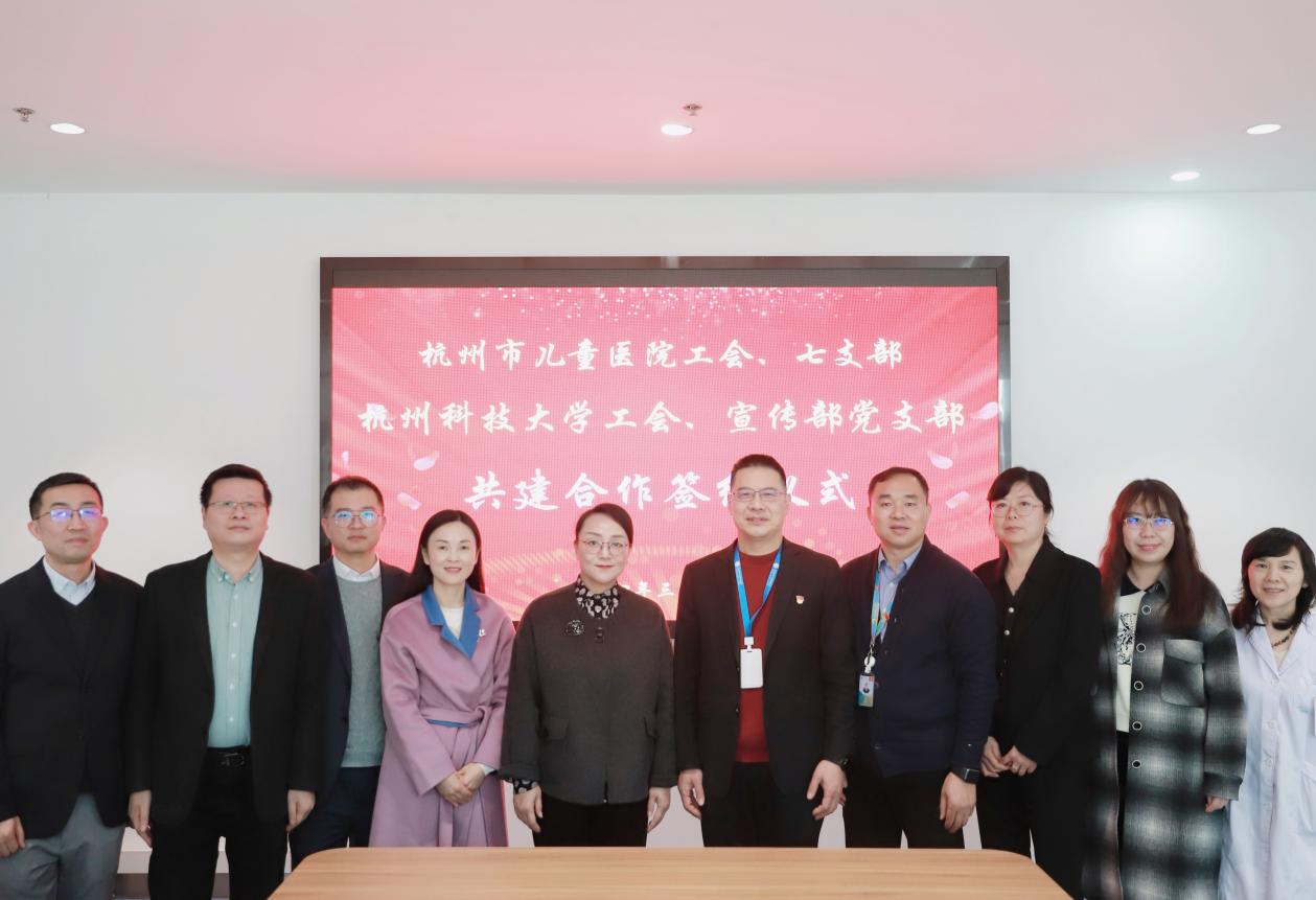 为进一步创新支部党建工作载体,强化校医共建、资源共享、发展共赢,促进党建工作同业务工作深度融合,为教职工提供连续优质的儿童医疗健康服务,切实解决好教职工子女看病难问题,助力“幸福杭电”建设,3月19日下午,校工会、宣传部党支部与杭州市儿童医院工会、第七党支部在杭州市儿童医院举行党建共建合作签约仪式。校党委副书记钱波以及杭州市儿童医院党委副书记、副院长刘伟光,党委委员、健康事业发展部主任陆富生等出席签约仪式。组织部、宣传部、工会、校医院及杭州市儿童医院健康事业发展部、党建办、工会、呼吸科等有关负责同志参加活动。