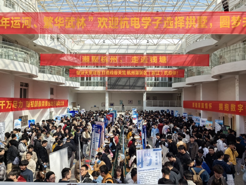 春日阳光融融,人群熙熙攘攘。为深入贯彻落实党中央、国务院关于促进高校毕业生就业创业的决策部署,落实教育部2024届高校毕业生春季促就业攻坚行动,杭州电子科技大学于3月20日下午在下沙校区学生活动中心举行2024年春季实习就业综合招聘会。该招聘会由杭州市人才管理服务中心,高新区(滨江)人力资源和社会保障局、拱墅区人力资源和社会保障局,以及杭州其他区(县)共同支持。