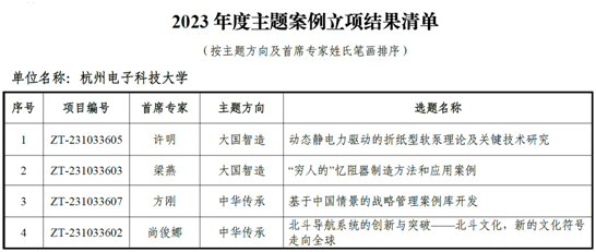 近日,由教育部学位与研究生教育发展中心来函获悉,教育部已公布2023年主题案例征集立项结果,经“单位审核推荐”“专家分组评议”“案例专家委审核”三级评议审核,我校4个主题案例项目获批教育部立项建设,其中“大国智造”2项,“中华传承”2项。